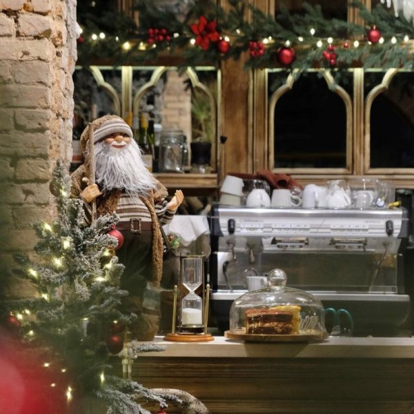 Infact Coffee có không gian thoáng đãng gồm một trệt và một lầu. Cũng như đa phần các quán cà phê trang trí Giáng Sinh sớm khác, Infact chọn tông màu ấm, vật trang trí tươi sáng và đáng yêu, tạo thiện cảm cho thực khách.