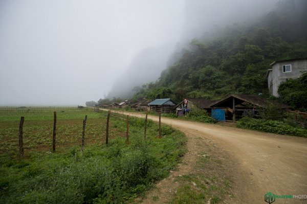 Buổi sớm ở Tân Hoá với sương mù dày đặc, nhiệt độ chỉ từ 15-20oC rất mát mẻ.
