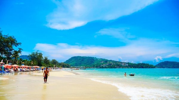 Bãi biển Patong với làn nước trong xanh và bãi cát trắng mịn