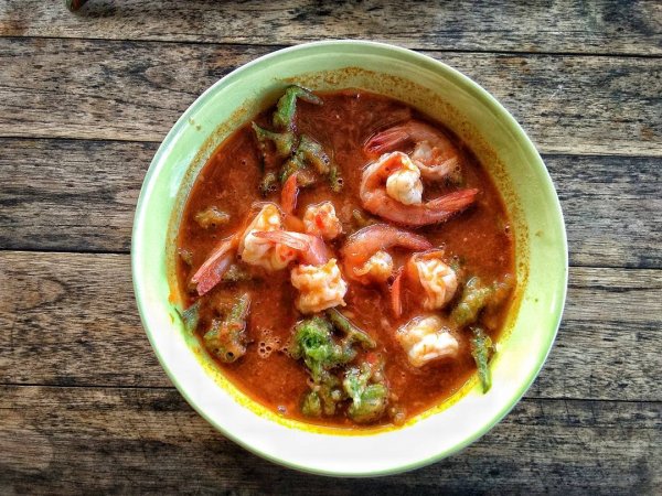 Cari cá HomokCari cá Homok là món ăn đặc sắc chỉ có duy nhất ở đây. Cách chế biến món ăn cũng rất đặc biệt, nó được gói trong lá chuối chung với một loại cá có tên bai cha-ploo. Ngay khi thưởng thức thì ấn tượng đầu tiên mà nó để lại chính là ở vị tanh đặc biệt của nó nhưng càng ăn thì bạn sẽ càng bị cuốn hút bởi hương vị này.