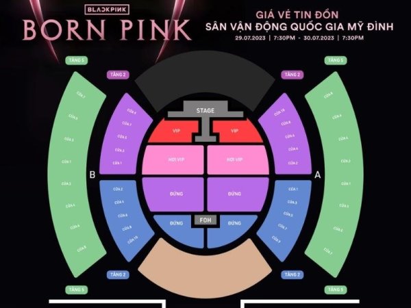 BlackPink đến Việt Nam 2023 – Tin tức này đã gây bất ngờ cho cộng đồng fan hâm mộ BlackPink và K-pop tại Việt Nam (Nguồn: Facebook BLACKPINK)Vé concert BlackPink sẽ được mở bán vào lúc 12h trưa ngày 7/7/2023 trên trang web Ticketbox.vn. Địa điểm tổ chức concert BlackPink tại Việt Nam là Sân vận động Quốc gia Mỹ Đình, có sức chứa lên đến 40.000 người. Tuy nhiên, do phải thiết kế để dựng sân khấu biểu diễn, nên số lượng ghế ngồi sẽ bị giảm xuống. Dự đoán số ghế để Ban tổ chức bán ra cho người hâm mộ có lẽ sẽ chỉ còn khoảng 30.000 chỗ ngồi.