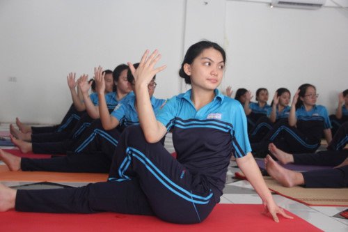 HS Trường THPT Bùi Thị Xuân trong tiết học Yoga