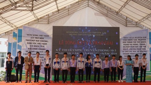 BTC trao bằng khen cho HS xuất sắcGD&TĐ - Từ 02 đến ngày 03/3/2019, trường THPT chuyên Nguyễn Du, thành phố Buôn Ma Thuột đã chào đón 2.062 học sinh xuất sắc lớp 10, lớp 11 của 57/58 trường THPT, trường phổ thông có nhiều cấp học, trong đó có cấp THPT cùng với hơn 1.000 cán bộ, quản lý, giáo viên, nhân viên về tham dự Kỳ thi Olympic truyền thống 10-3 tỉnh Đắk Lắk lần thứ IV năm học 2018-2019. Tại Lễ tổng kết và trao giải của Kỳ thi vào sáng 3/3/2019, Giám đốc Sở GDĐT Phạm Đăng Khoa nhấn mạnh: Đây là sân chơi trí tuệ thiết thực, ngoài việc đánh giá chất lượng dạy học và giáo dục của của nhà trường, còn là dịp để phát hiện, tuyển chọn những học sinh xuất sắc, tạo nguồn học sinh giỏi dự thi các Kỳ thi cấp khu vực, Quốc gia trong những năm tiếp theo.