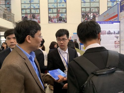 Học sinh tự tin thuyết trình các đề tàiGD&TĐ - Với chủ đề Khoa học tạo ra sự đổi mới, cuộc thi Khoa học kĩ thuật cấp quốc gia dành cho học sinh trung học năm học 2018-2019 đã chính thức khởi động với lễ khai mạc cuộc thi khu vực phía Bắc diễn ra chiều nay 9/3 tại Trường THPT chuyên Hà Nội Amsterdam.