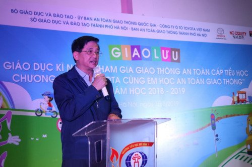 GD&TĐ - Ngày 15/3, hơn 100 học sinh tiểu học trên địa bàn thành phố Hà Nội đã tham gia chương trình giao lưu giáo dục kỹ năng tham gia giao thông an toàn với chủ đề "Toyota cùng em học an toàn giao thông". Tại chương trình, ông Phạm Xuân Tiến- Phó Giám đốc Sở GD&ĐT Hà Nội cho biết: Chương trình được tổ chức nhằm trang bị cho các em học sinh những kiến thức và kỹ năng tham gia giao thông an toàn để các em có thể tự bảo vệ, phòng tránh tai nạn giao thông, đồng thời góp phần xây dựng xã hội giao thông an toàn văn minh trong tương lai.Ông Phạm Xuân Tiến đã chia sẻ với các em học sinh về các tình huống giao thông cần lưu ý, những quy định an toàn giao thông cơ bản mà học sinh phải biết như đi bộ sát lề đường bên phải, không vượt đèn đỏ, đội mũ bảo hiểm khi ngồi xe máy tham gia giao thông.