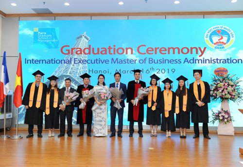 Lãnh đạo Trường KTQD và PGSM nhận hoa chúc mừng từ tân thạc sĩSinh viên chính thức nhận bằng Thạc sĩ, được PGSM phê duyệt. Sinh viên tốt nghiệp IEMBA thành công đánh dấu một sự kiện rất quan trọng cho giáo dục và sự nghiệp của họ.Chương trình của Master Executive quốc tế hiện đã tuyển sinh Khóa 5 ở chuyên ngành Tài chính Ngân hàng và Quản trị Chiến lược. Dự kiến xét tuyển ngày 20/4 và khai giảng 4/5/2019.Là chương trình đào tạo Thạc sĩ dành cho những nhà quản lý có kinh nghiệm thực tế mong muốn hoàn thiện hơn trong khả năng quản lý để tiếp tục theo đuổi con đường công danh. Chương trình IEMBA đề cao TÍNH ỨNG DỤNG thực tế và sát với HOẠT ĐỘNG DOANH NGHIỆP.IEMBA – PGSM là Chương trình Thạc sĩ Quản trị Kinh doanh Quốc tế liên kết giữa Đại Học Quản trị Paris Pháp và Đại Học Quốc gia Tp.HCM tại TP HCM và tại HN là Trường Đại học Kinh tế Quốc dân.Chương trình được được thiết kế với cấu trúc đặc biệt phù hợp với nhu cầu nâng cao kiến thức và thực hành trong giai đoạn phát triển của Việt nam hiện nay.