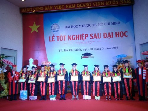 Đại diện Ban Giám hiệu trường trao bằng khen cho các học viên xuất sắc trong học tập.Lãnh đạo ĐH YD cho biết: Quá trình đào tạo của các bậc học SĐH ngoại trừ bậc học tiến sĩ từ 3 – 4 năm, bác sĩ nội trú 3 năm các bậc học khác thời gian đào tạo trung bình là 2 năm với khối lượng đào tạo trung bình là 60 tín chỉ hay 100 đơn vị học trình. Trong đó việc đào tạo chuyên khoa và bác sĩ nội trú đòi hỏi thời gian thực hành chiếm 50% thời gian đào tạo để nâng cao kiến thức và kỹ năng chuyên ngành.