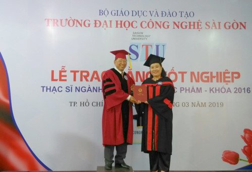 | PGS.TS Cao Hào Thi-Hiệu trưởng Trường ĐH STU trao bằng tốt nghiệp thạc sĩ cho các học viên. |