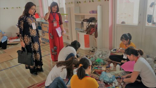 Ban tổ chức Giám sát việc làm đồ dùng đồ chơi của giáo viên tại Hội thi |