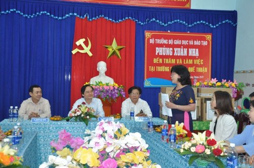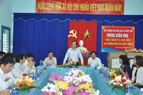 Bộ trưởng Phùng Xuân Nhạ cùng các thành viên Đoàn công tác Bộ GD&ĐT đã đến nắm bắt tình hình thực tế tại Trường MG Quế Thuận (xã Quế Thuận), Trường THPT Nguyễn Văn Cừ (xã Quế Phú).