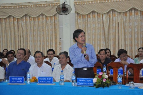 | Đội ngũ cán bộ quản lý các cơ sở giáo dục Quảng Nam trình bày ý kiến kiến nghị với Đoàn công tác Bộ GD&ĐT và Bộ trưởng Phùng Xuân Nhạ. |