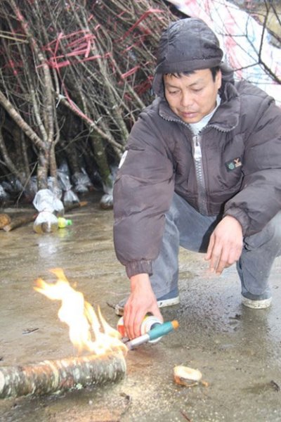 Một người bán hàng đang đốt gốc đào.Trao đổi với NTNN, TS Đặng Văn Đông - Giám đốc Trung tâm Nghiên cứu phát triển hoa và cây cảnh - Viện Nghiên cứu rau quả T.Ư cho rằng: “Theo kinh nghiệm dân gian, đốt cành đào trước hết là để diệt khuẩn, diệt nấm xâm nhập vào các bó mạch dẫn của cành đào, làm cành đào hạn chế chảy nhựa, mất dinh dưỡng của cành và làm sạch nước cắm đào... Tuy nhiên, việc đốt gốc cành đào cũng sẽ gây tắc các mạch, không cho nước và dinh dưỡng đi lên nuôi cành”.Theo TS Đông, nếu áp dụng biện pháp đốt cành thì chỉ đốt vừa phải. “Nếu đốt quá lâu, quá nhiều sẽ gây tổn thương mạch, tắc mạch, sẽ lại làm cành đào chóng tàn” - TS Đông nói.