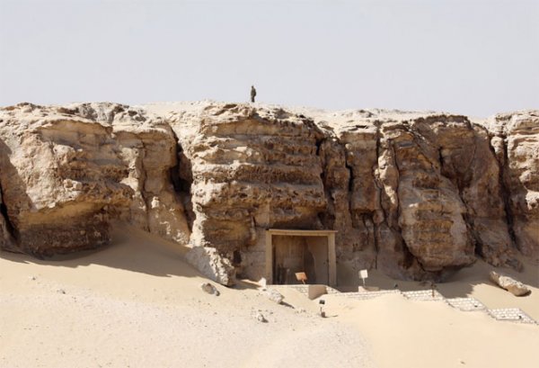 Bên ngoài lối vào khu khảo cổ Tuna El-Gebel ở Minya. (Ảnh: Reuters).