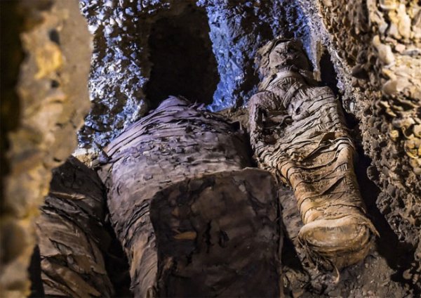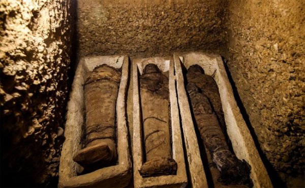 Các xác ướp được phát hiện bên trong bốn phòng ở độ sâu 9 mét tại khu khảo cổ Tuna El-Gebel, cách Cairo 260km về phía nam. (Ảnh: AFP).