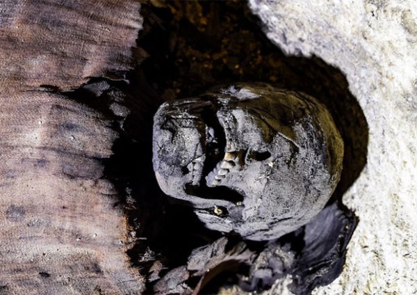 Một trong những xác ướp có phần đầu chỉ được quấn vải lanh 1 phần, để lộ hàm răng. (Ảnh: AFP).