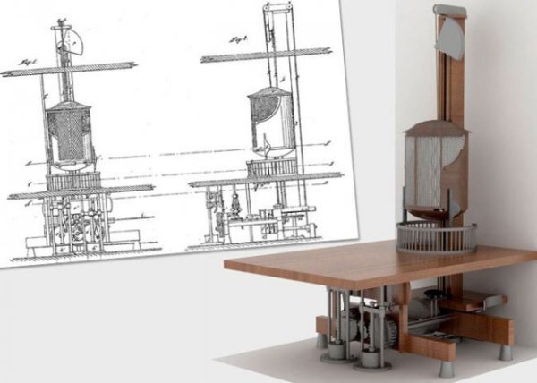 Bản vẽ và mô hình thang máy của Otis Tuft.