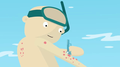 Lao độc có thể bắn ra ngay cả khi con sứa đã chết, nên nếu bị sứa đốt việc loại bỏ xúc tu còn sót lại trên da rất quan trọng. Sau đó, rửa với giấm sẽ làm vô hiệu hóa những nang chứa lao độc chưa kích hoạt. Nước biển có thể giúp loại bỏ những nang chứa lao độc còn sót lại.