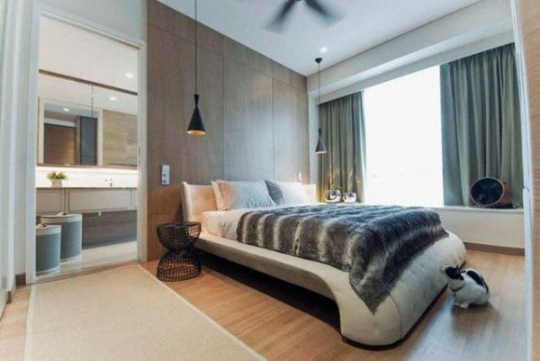 Phòng ngủ tinh tế tràn ngập ánh sáng.
