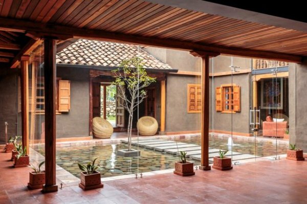 Tất cả các phòng đều hướng về khu vực sân vườn ở giữa.