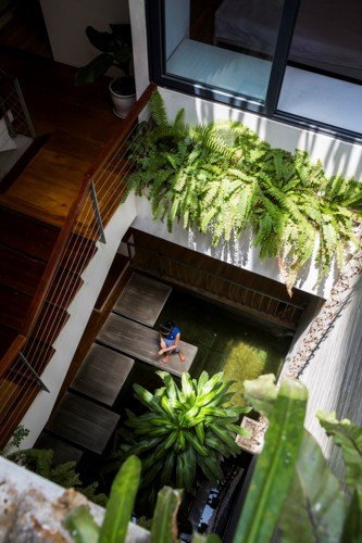 Cây trồng phát triển xung quanh cầu thang dẫn lên tầng 2.