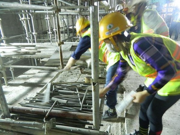 Công nhân đang tháo dỡ cốp pha tầng 4