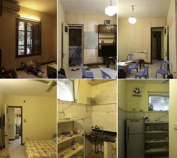 Diện mạo trước đây của ngôi nhà với nước sơn tường bong tróc, bậc thang lên xuống cũ kỹ, khung cửa sổ với các chấn song sắt lỗi thời cùng cây cối rậm rạp trông rất rối mắt.