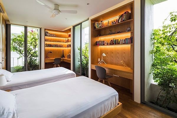 Các phòng ngủ sẽ được đặt trong một khối khác của ngôi nhà, tuy nhiên vẫn không thiếu vắng những chiếc xây xanh.