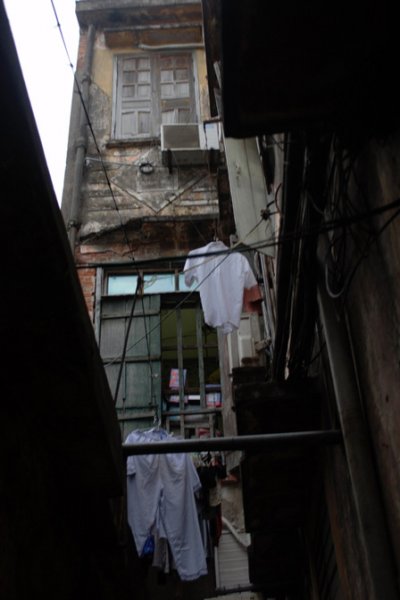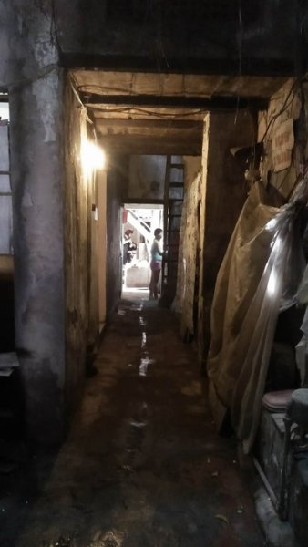 Lối đi chung chật hẹp, luôn phải thắp đèn dù giữa trưa.