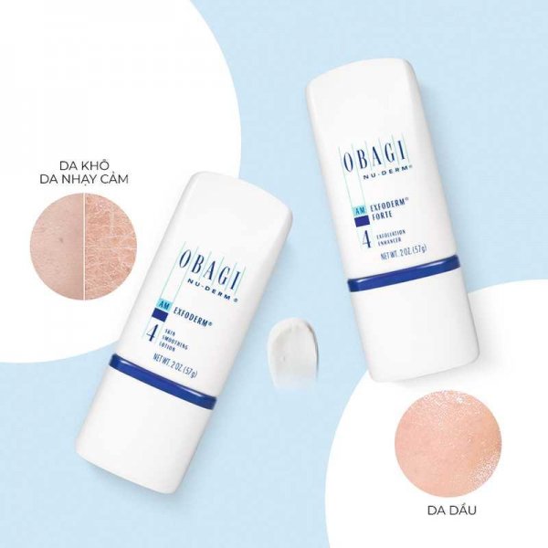 Obagi Nu-derm Exfoderm Skin Smoothing Lotion 4 đến từ thương hiệu chăm sóc da số 1 của nước Mỹ – Obagi. Sản phẩm tẩy tế bào chết cho da khô của Obagi sử dụng công nghệ Nu-derm Exfoderm giúp loại bỏ tế bào chết trên da một cách dịu nhẹ và kích thích các tế bào mới phát triển. Giúp cho các hoạt chất trong hệ thống điều trị thấm sâu hơn. Ngoài ra, sản phẩm còn giúp cải thiện tone da, ngăn ngừa hình thành mụn đầu đen hay mụn trứng cá. Đối với các nàng da khô, lão hóa hay đang điều trị nám chuyên sâu đều rất thích hợp sử dụng sản phẩm này.