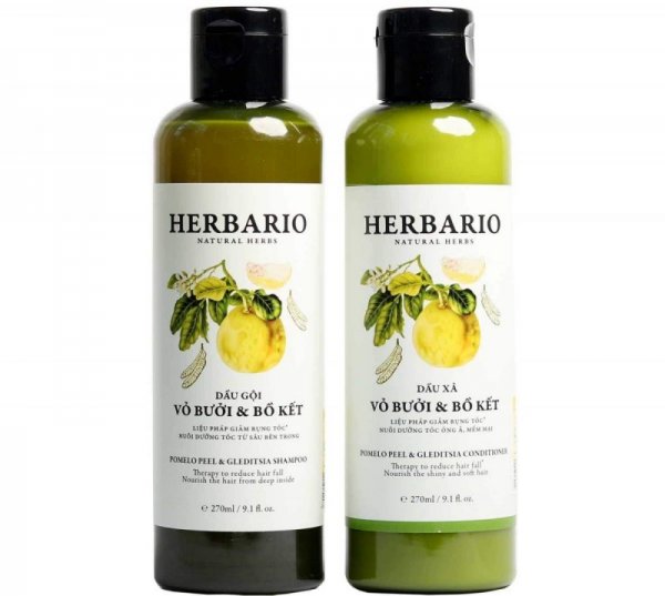 Dầu xả Herbario là sản phẩm của người Việt có chiết xuất từ những thảo mộc từ thiên nhiên, 100% thuần chay, không chứa Sulfate và Paraben. Trong vỏ bưởi có chứa một số các loại Vitamin A, C, E, chất Pectin, tinh dầu giúp kích thích mọc tóc, cải thiện tình trạng khô rối, gãy rụng. Hàm lượng Flavonozit và Saponaretin chứa trong bồ kết có tính kháng khuẩn cao giúp loại sạch gàu, đồng thời trị rụng tóc hiệu quả.
