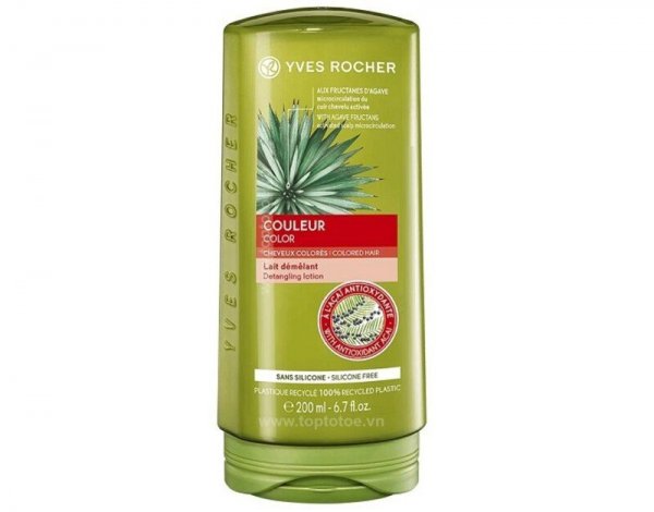 Dầu xả chăm sóc tóc nhuộm Yves Rocher Color Detangling Lotion có công thức với hơn 98% thành phần có nguồn gốc từ thiên nhiên. Chiết xuất từ nước cây thùa (Agave Fructan) và quả Acai Pulp có khả năng chống oxy hóa, hoạt động như một lá chắn chống lại các gốc tự do từ các tác nhân gây ô nhiễm môi trường. Điều này giúp sợi tóc tránh được tình trạng bị oxy hóa đồng thời ngăn ngừa sự xỉn màu cho mái tóc nhuộm.