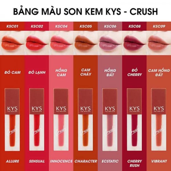 Đặc biệt son màu đỏ cam của nhà Chocolate KYS Crush kết hợp với phấn mắt màu nhẹ nhàng cùng tone trang điểm màu nude sẽ mang lại cho chị em sự hoàn hảo, tươi mới. Sự kết hợp này sẽ làm nổi bật đôi môi gợi cảm, quyến rũ, xóa tan những khuyết điểm không đáng có. Nhờ đó, những nàng môi thâm sẽ có cơ hội được “lột xác”, tự tin và cuốn hút hơn.