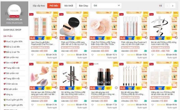 Shop mỹ phẩm chính hãng trên Shopee – Focallure là một trong những shop quốc tế bán mỹ phẩm đáng tin cậy. Focallure tập trung chủ yếu vào các sản phẩm trang điểm như phấn mắt, phấn nền, phấn bắt sáng, son,… Các sản phẩm đa dạng mẫu mã, giá thành cũng không quá đắt nhưng chất lượng khá tốt. Tuy nhiên, vì đây là shop quốc tế nên thời gian giao hàng lâu nhưng bù lại giá thành rẻ cũng đáng để chờ đợi.
