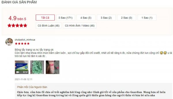 Hệ thống Guardian với hơn 100+ cửa hàng trên khắp các tỉnh – thành phố tại Việt Nam. Hiện tại Guardian có mặt tại Shopee Mall thu hút hàng ngàn lượt mua và theo dõi. Guardian cũng nhận được nhiều nhận xét tốt về cả chất lượng sản phẩm đến chế độ chăm sóc khách hàng tận tình. Ngoài ra, trên trang của Shopee cũng thường có các chương trình khuyến mãi và ưu đãi hấp dẫn. Nếu bạn đang cần tìm shop bán mỹ phẩm trang điểm và chăm sóc da chính hãng trên Shopee thì chắc chắn không thể bỏ qua.