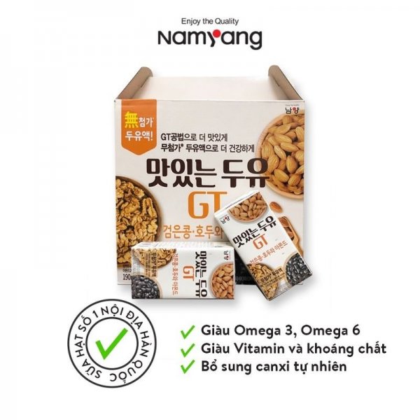 Sữa hạt Óc Chó Hạnh Nhân đậu đen Namyang là sản phẩm có xuất xứ tại Hàn Quốc đến từ thương hiệu Namyang. Sản phẩm vô cùng an toàn, chất lượng cho người tiêu dùng. Với kinh nghiệm chọn lọc nguồn nguyên liệu nghiêm ngặt, quy trình sản xuất theo tiêu chuẩn công nghệ Hàn Quốc được quốc tế công nhận. Thành phần chính là sữa tươi không sử dụng chất bảo quản, không màu hóa học kết hợp cùng các loại hạt không biến đổi gen. Sữa hạt Namyang được đánh giá là tươi ngon, chất lượng mà giá thành cực rẻ phù hợp nhu cầu của đa số người dùng. Đây cũng là dòng sữa có sức cạnh tranh khá lớn đối với các dòng sữa thương hiệu nổi tiếng khác.