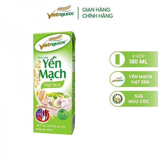 Sữa Yến Mạch Hạt Sen với nguồn dinh dưỡng từ sữa hòa quyện cùng hạt ngũ cốc, lúa mạch và hạt sen, với công thức độc quyền từ thương hiệu Việt Ngũ Cốc bổ sung các vitamin và chất khoáng. Sữa Yến Mạch Hạt Sen có vai trò quan trọng trong việc giải phóng năng lượng, tăng cường chức năng cơ và hệ xương, hỗ trợ tích cực cho các hoạt động thể chất. Sản phẩm có hương vị thơm ngon nên luôn được trẻ yêu thích và lựa chọn.