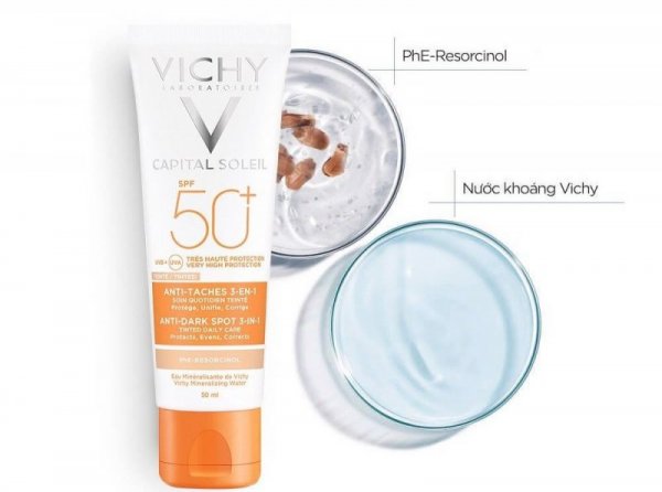 Kem chống nắng Vichy Capital Soleil Mattifying 3-in-1 là một trong các dòng kem chống nắng Vichy mà bạn có thể tham khảo. (ảnh: shopee.vn).Kem chống nắng Vichy giảm thâm nám SPF 50+ Anti Dark Spot 3 in 1