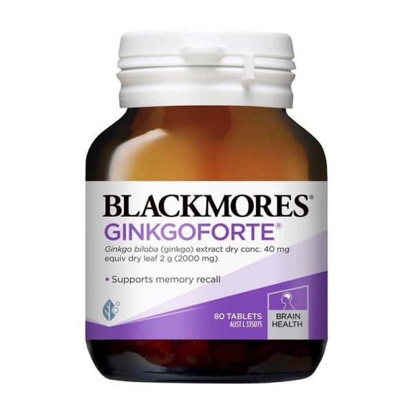 Thực phẩm chức năng bổ não Ginkgo Forte Blackmores có bảng thành phần bao gồm Ginkgo biloba, ginkgolides và bilobalide.