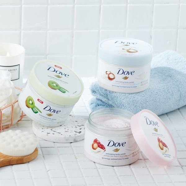 Từ xưa đến nay, Dove luôn nổi tiếng là một thương hiệu mỹ phẩm hàng đầu thế giới, chuyên sản xuất các sản phẩm chăm sóc tóc và da, được ưa chuộng trên 80 quốc gia cả Châu Âu lẫn Châu Á. Bên cạnh đó, các dòng sản phẩm của Dove luôn chứa các thành phần lành tính, an toàn cho cả làn da và sức khỏe của người dùng. Một trong những sản phẩm bán chạy nhất của thương hiệu này phải kể đến đó chính là tẩy da chết Dove Exfoliating Body Polish. Sản phẩm không chỉ có khả năng làm sạch và đánh bay vết sừng trên da mà còn giúp dưỡng ẩm từ sâu bên trong.