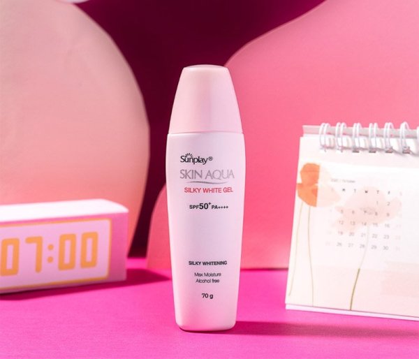 3. Kem chống nắng Skin Aqua hồng- Silky White Gel