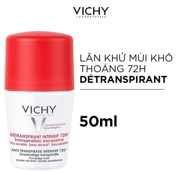 Lăn khử mùi trị thâm nách Vichy Détranspirant Intensif sẽ là phương pháp hoàn hảo giải quyết các vấn đề về mùi hôi và mồ hôi trên cơ thể dành cho bạn vào những ngày nắng nóng. Được chiết xuất từ nguồn nước khoáng núi lửa Vichy cùng với các hoạt chất tiên tiến khác, lăn khử mùi Vichy sẽ giúp hỗ trợ chăm sóc vùng da nhạy cảm dưới cánh tay luôn khô thoáng, mịn màng, không còn mùi hôi khó chịu xuyên suốt 72h.