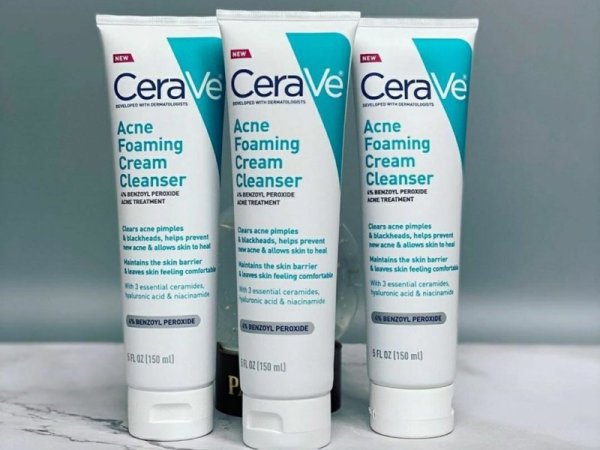 Sữa rửa mặt CeraVe Acne Foaming Cream giúp trị mụn với 4% Benzoyl Peroxide (Nguồn: Shopee.vn) Mua NgayDòng sản phẩm CeraVe Acne Foaming Cream·chuyên dùng để hỗ trợ điều trị mụn trứng cá, mụn đầu đen. Độ pH của sản phẩm khoảng 5.5 rất dịu nhẹ, đi kèm với đó là benzoyl peroxide có tác dụng chữa lành mụn trứng cá và duy trì hàng rào bảo vệ da. Đây chính là sản phẩm chân ái cho các nàng da mụn nhạy cảm.