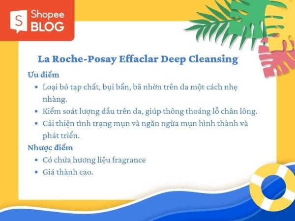 Được biết đến là sản phẩm làm sạch cho da dầu mụn với bảng thành phần lành tính. Ngoài ra, La Roche Posay Effaclar Deep Cleansing còn có các ưu điểm khác như: