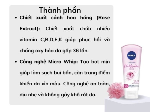 Thành phần của sữa rửa mặt Nivea Hokkaido Rose (Nguồn: Shopee Blog)Ưu điểm và nhược điểm