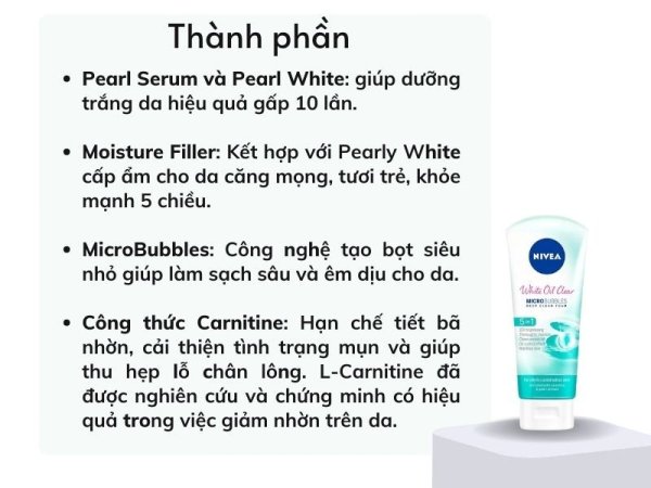 Thành phần của Nivea Pearl White Microbubbles Deep Clean Foam (Nguồn: Shopee Blog)Ưu điểm và nhược điểm