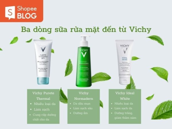 Các dòng sữa rửa mặt nhà Vichy (Nguồn: Shopee Blog)Ngay bây giờ, hãy cùng Shopee Blog phân tích sâu hơn về từng dòng sữa rửa mặt đến từ thương hiệu Vichy nhé!