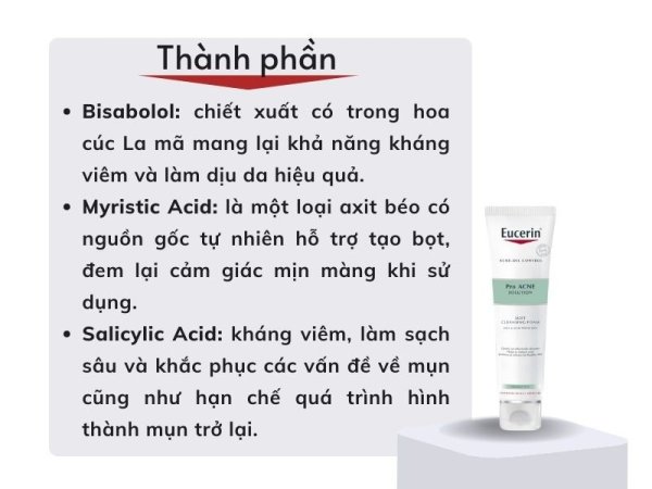 Bảng thành phần lành tính của sữa rửa mặt Eucerin Pro Acne Solution Cleansing Foam (Nguồn: Shopee Blog)Ưu điểm và nhược điểm