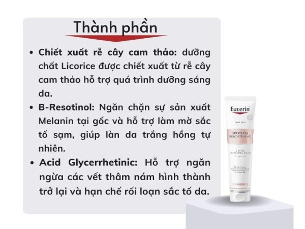 Thành phần của sữa rửa mặt tạo bọt Eucerin Spotless Brightening Cleansing Foam (Nguồn: Shopee Blog)Ưu điểm và nhược điểm