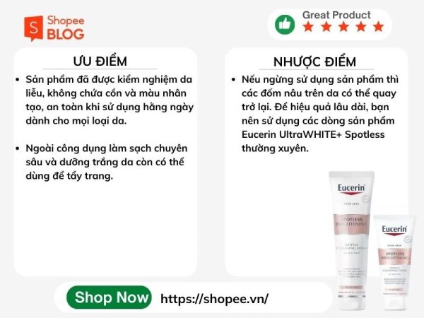 Ưu và nhược điểm của sữa rửa mặt tạo bọt Eucerin Spotless Brightening Cleansing Foam (Nguồn: Shopee Blog)