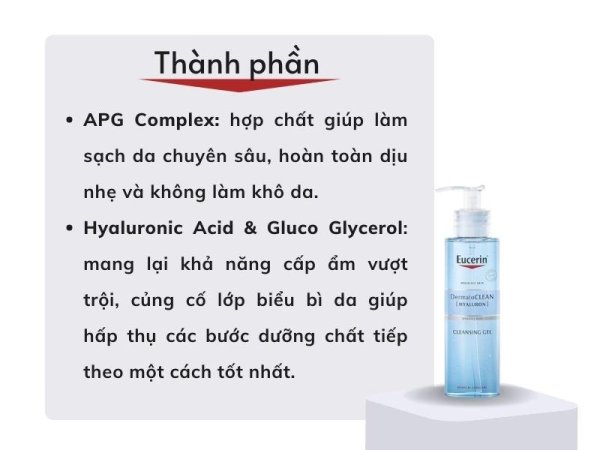 Thành phần của Gel rửa mặt Eucerin DermatoClean Hyaluron Refreshing Cleansing (Nguồn: Shopee Blog)Ưu điểm và nhược điểm